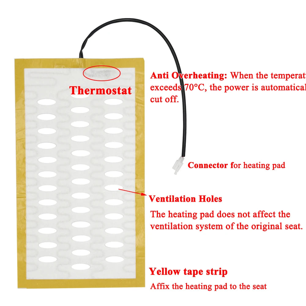 Two heated pads for one seat: 1pc on back and 1pc on the bottom. With sticker, easy to install.